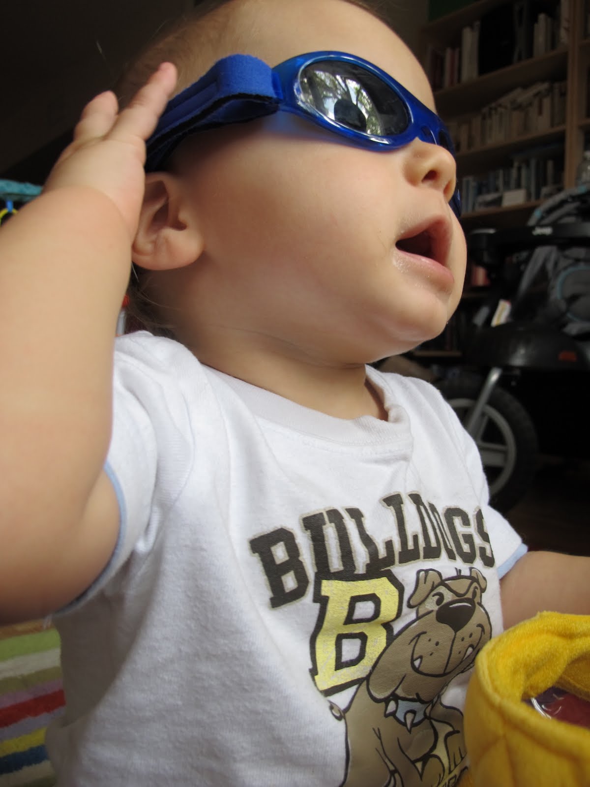 People, this is serious. A week from today will be my very first birthday! I know mom and dad a planning a little fete in my honor. They haven't said anything to me about it specifically, but it is hard not to notice all the scraps of colored craft paper flying around the house these days. I'll still look surprised of course, but now I have some time to plan my outfit. I was testing these sunnies out the other day.